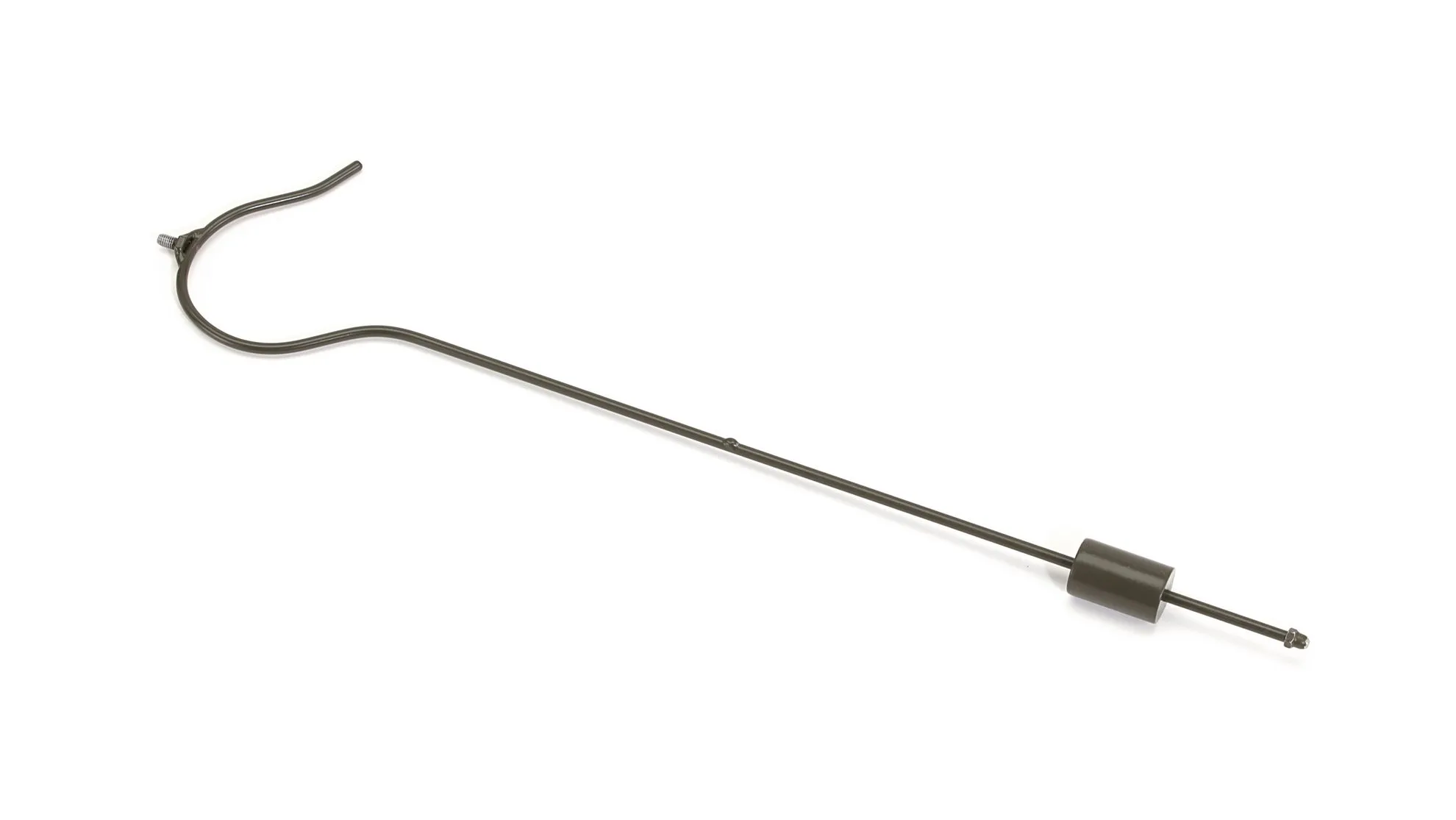 Astina in ferro con gancio e peso scorrevole; altezza 45 cm.