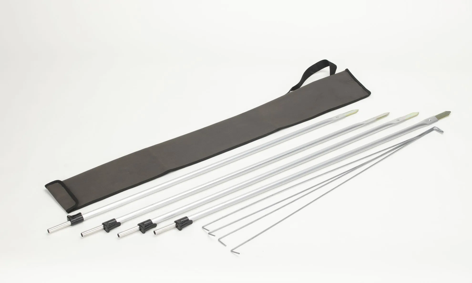 • quattro picchetti in alluminio telescopici, regolabili in altezza da 90 a 180 cm