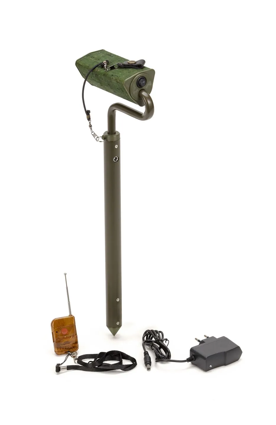 Fornito di telecomando, batterie al litio ricaricabili e caricabatterie; si ricarica tramite spinotto senza dover estrarre le batterie.